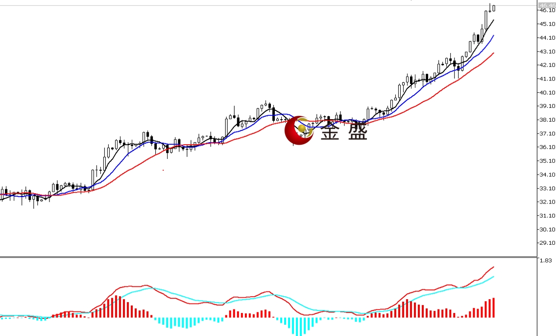 前一个交易日,白盘时段,行情围绕45美元关口震荡,盘中最低至44.59美元,午后收复早盘全部跌幅走V型。晚盘时段,行情持续阳线上行,价格强势突破46美元大关,价格最高至46.61美元,尾盘小幅回调,最终收有影线的阳K。均线系统多头排列,对价格上涨构成支撑。MACD指标快慢线零轴上方现金叉,做多的动能为主。白银上涨趋势不变,连续两日收阳,价格出现明显的加速上涨现象,年内涨幅超60%。强势上涨不言顶,操作上低吸为主。