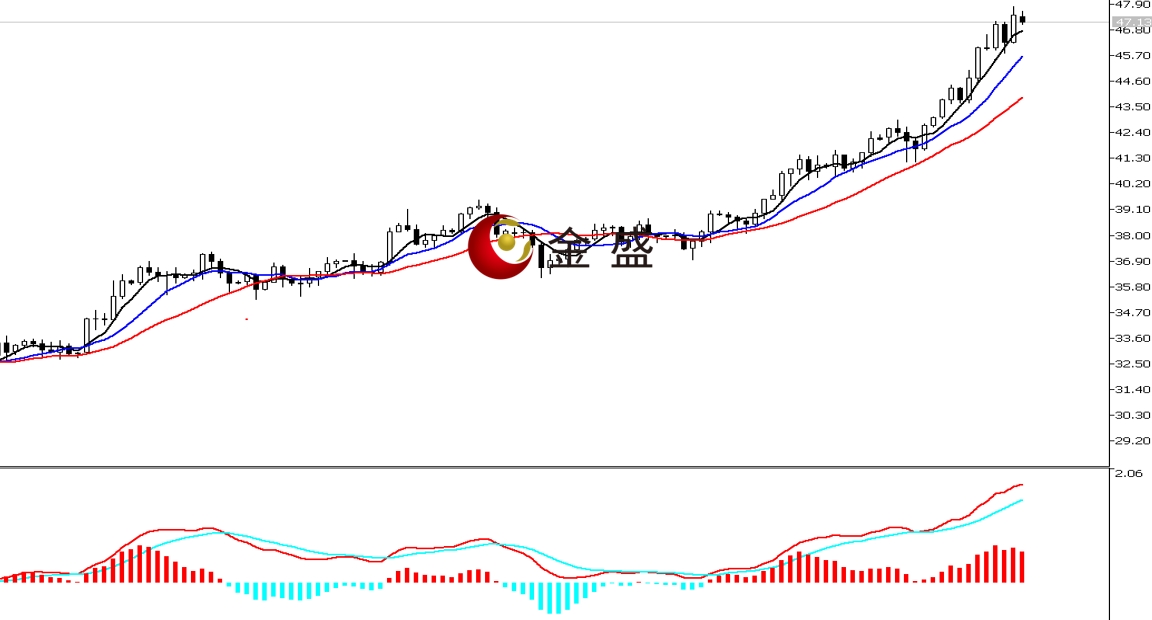 前一个交易日,白盘时段,银价开市即创当日低点46.6美元,早盘一小时拉升逾1%,价格突破47美元关口。晚盘时段,行情延续上行,价格最高至47.81美元,随后有所调整,最终收有上影线的阳K。均线系统多头排列,对价格上涨构成支撑。MACD指标快慢线零轴上方现金叉,做多的动能为主。白银上涨趋势不变,近三日形成两阳夹一阴的看涨结构,价格运行在五日均线之上,后市偏向还有高点,操作上调整做多为主。