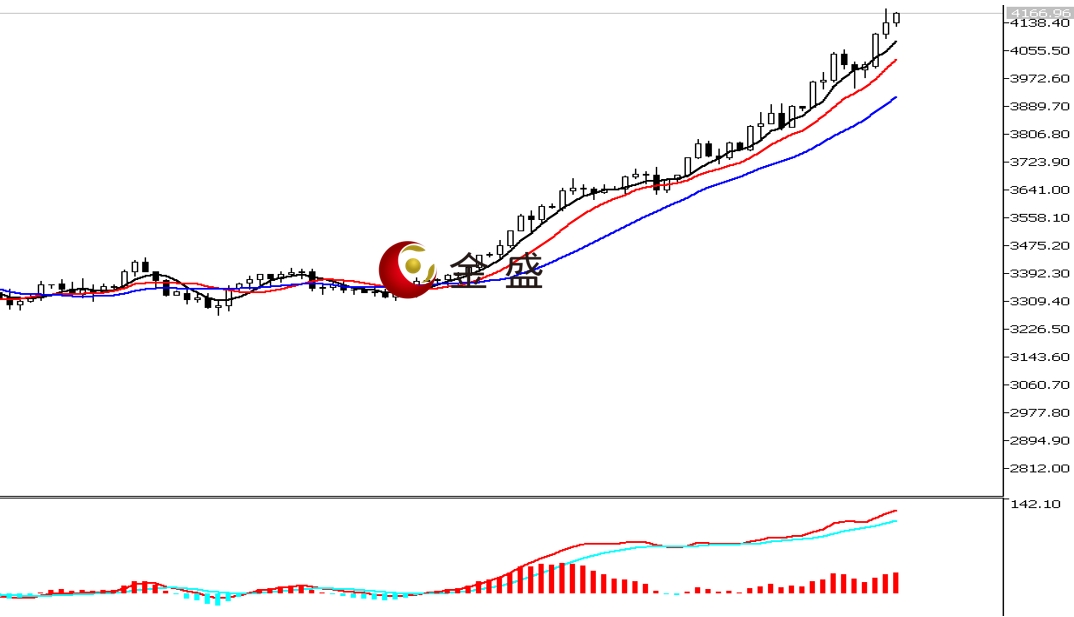 前一个交易日,白盘时段,黄金依托4100美元关口支撑震荡上行,创当日高点4179.36美元。午后出现跳水走势,一小时走低逾六十美金,价格创日内低点4090.21美元。晚盘时段,行情震荡为主,多头收复部分失地,最终收有上影线的阳K。均线系统多头排列,运行在价格下方形成支撑。MACD指标快慢线零轴上方现金叉,做多的动能为主。黄金上行趋势不变,昨日出现快速调整,但回落空间不大,K线承压信号还需时间观察。今天早盘价格已经回到昨日高点附近,短期关注4200美元关口的压力,操作上调整做多为主。