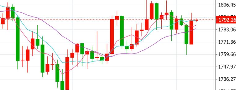 [2021/11/05 09:56]现货黄金隔日欧盘开启上涨模式,一度逼近1800关口,较日低上涨了25美元,最终收涨1.25%,录得三周来最大单日涨幅,美债收益率大幅走低,令金价得到支撑。