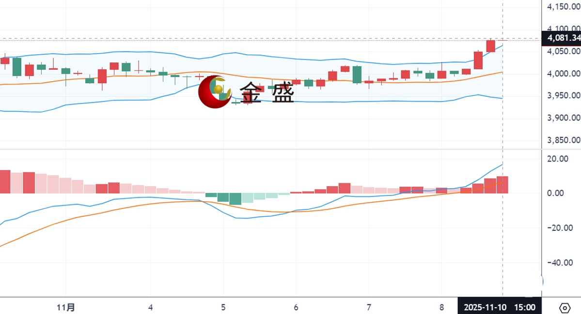 现货黄金周一(11月10日)开市于3999.79美元/盎司,盘中大幅上涨,一度刷新两周高点至4084附近,市场对美联储12月再次降息的预期持续升温,叠加近期多项疲软经济数据引发的增长忧虑,共同推动金价走强。地缘局势担忧情绪回升,也给金价提供避险支撑。