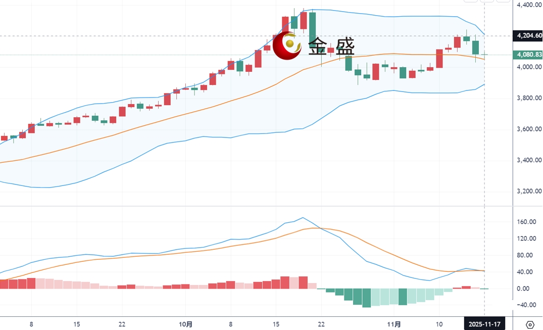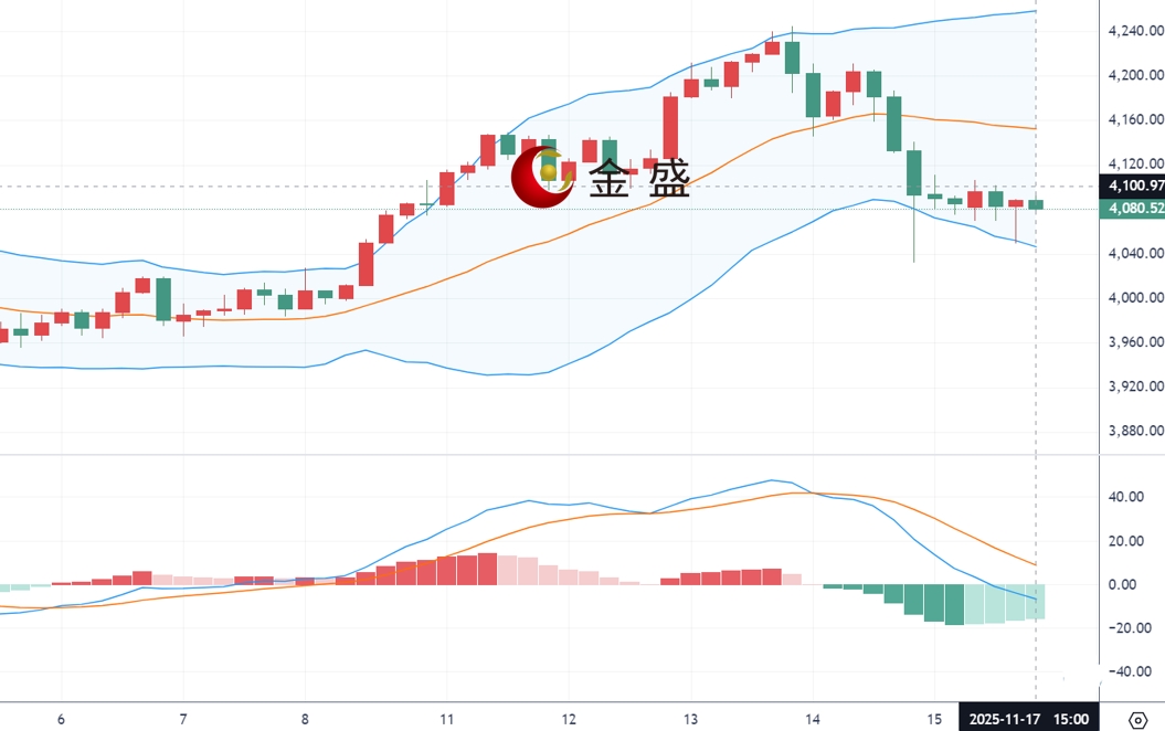 现货黄金周一(11月17日)开市于4082.94美元/盎司,盘中反弹受阻,盘中早些时候一度反弹至4106美元附近,但随后再度震荡走弱,由于受美联储官员连续发表偏鹰讲话影响,可能会限制黄金的上涨空间,降低了人们对12月降息的期望。芝商所(CME)的“美联储观察”工具显示,市场对12月降息25个基点的预期,从一周前的67%左右降至46%。