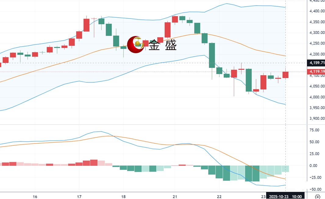 从四小时图来看,现货黄金上一交易日来回震荡洗盘,亚盘反弹在触及4161美元后回落,但未能破位下方4000关口支撑,空头动能有所放缓,当前macd死叉缩量震荡,整体趋势仍偏弱,布林口朝下,金价在布林下轨附近运行,短线技术面处于修复阶段,多头情绪依然存在,日内操作建议高抛低吸。重点关注4000关口的得失情况,若该位置守住,短期则看高位宽幅震荡修复;若跌破,则可能进一步打开下行空间。