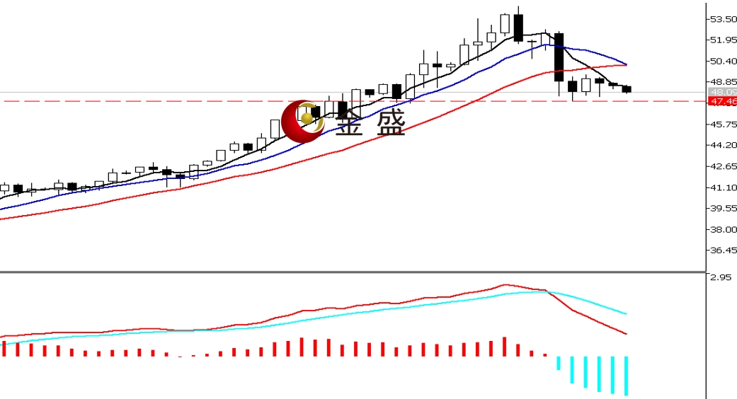 前一个交易日,白盘时段,价格承压49美元关口震荡下行,午后加速下挫跌破48美元大关,创当日低点47.79美元。晚盘时段,基本面消息利多,行情拐头上行,多头收复日内全部跌幅,最终收十字星。均线系统收敛向下拐头,对价格反弹形成阻碍。MACD指标快慢线零轴上方现死叉,做空的动能增强。白银周线收跌逾6%,高位形成黄昏星结构的反转信号,确认进入调整周期。近三日休整形成47.7—49.2的箱体结构,未有效突破区间前,操作上围绕上下轨高抛低吸。
