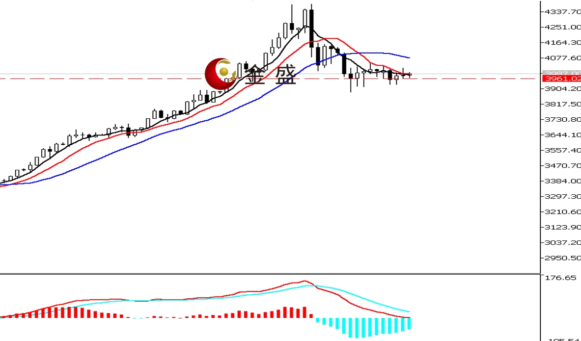 前一个交易日,白盘时段,黄金短暂调整至日内低点3964.48美元,随后连续阳线反扑。午盘加速上行突破四千关口。晚盘时段,行情在4020美元一带承压拐头下行,多头回吐当日全部涨幅,最终收十字星。均线系统收敛走平,布林带中轨运行在价格上方形成压力。MACD指标快慢线零轴上方现死叉,做空的动能减弱。昨日黄金走倒V字型,价格依然未能站上四千关口。行情维持震荡格局,短期看3950—4010区间盘整,操作上调整做多为主。