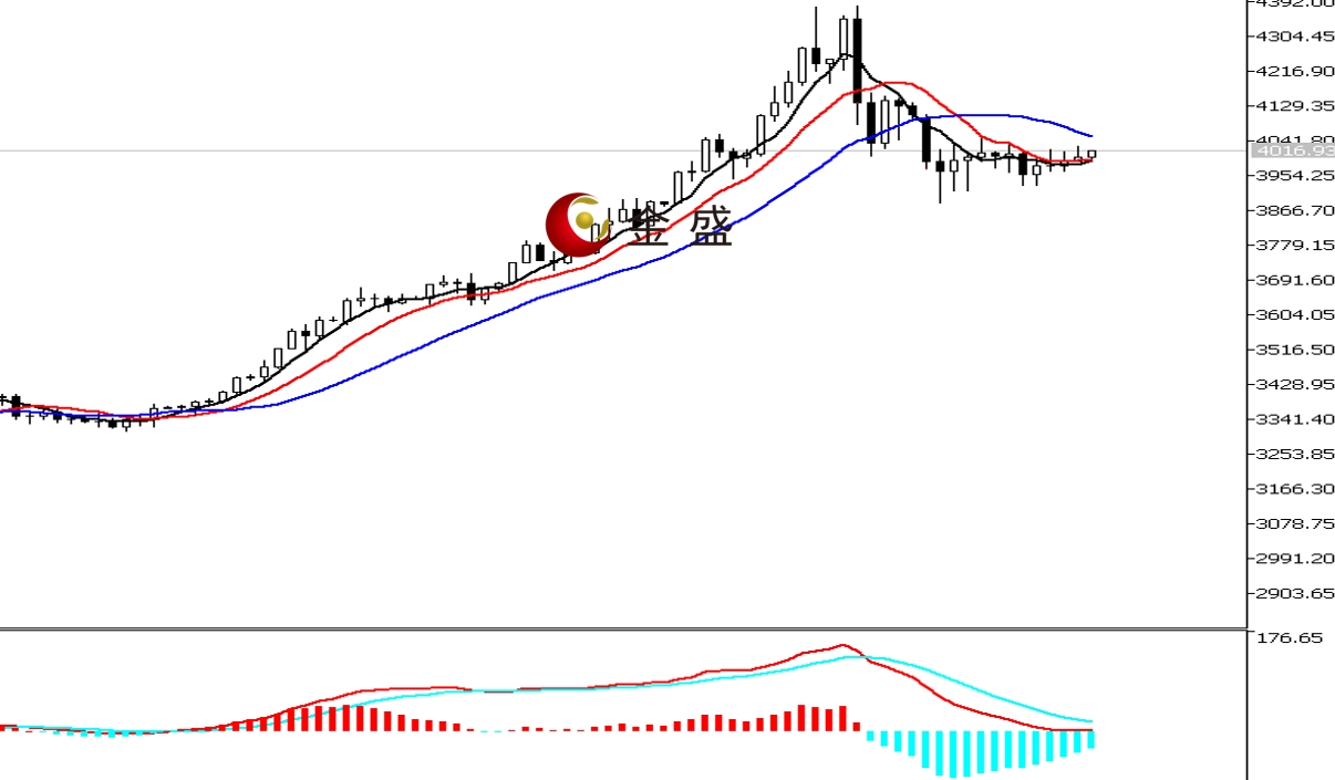 前一个交易日,白盘时段,黄金开市即创日内低点3974.25美元,随后震荡上方重返四千关口。晚盘时段,行情围绕整数关口休整为主,盘中一小时拉升四十美金,价格创当日高点4027.16美元,尾盘回吐部分涨幅,最终收有上影线的阳K。均线系统收敛走平,布林带中轨运行在价格上方形成压力。MACD指标快慢线零轴上方现死叉,做空的动能减弱。黄金区间盘整数日,多空围绕四千关口博弈,指标完成技术性修复。这一带的蓄势休整向上变盘的概率较大,短期关注4060美元一带的压力。